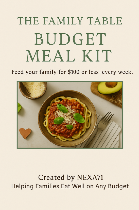 Created by NEXA71, this step-by-step system helps real families eat well — even when money is tight or SNAP benefits are delayed.